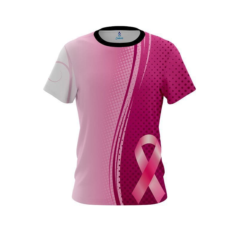 Stay 40% cooler with CoolWick. Our Plain Breast Cancer Pink Swirls CoolWick Bowling Jerseys are made of two different fabrics with the back being our CoolWick technology fabric that helps wick moisture away and helps air flow more easily through the fibers.