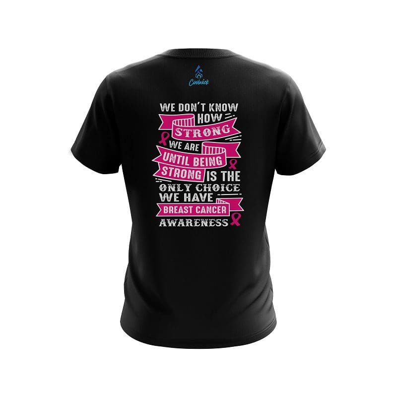 Stay 40% cooler with CoolWick. Our Plain Breast Cancer Strength CoolWick Bowling Jerseys are made of two different fabrics with the back being our CoolWick technology fabric that helps wick moisture away and helps air flow more easily through the fibers.