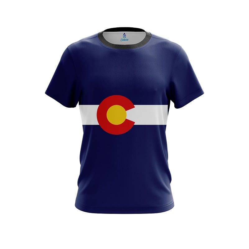 Stay 40% cooler with CoolWick. Our Plain Colorado Flag CoolWick Bowling Jersey are made of two different fabrics with the back being our CoolWick technology fabric that helps wick moisture away and helps air flow more easily through the fibers.