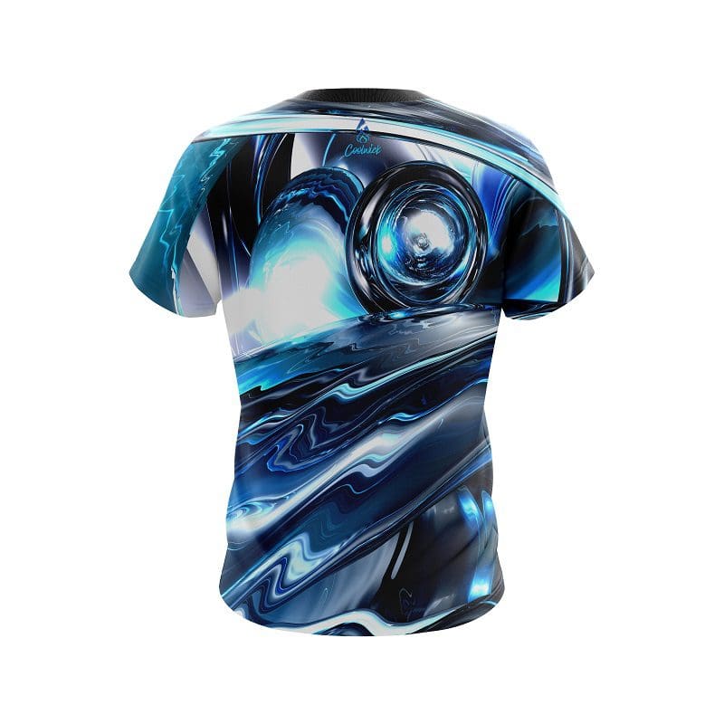Stay 40% cooler with CoolWick. Our Plain Futuristic Plasma Waves CoolWick Bowling Jerseys are made of two different fabrics with the back being our CoolWick technology fabric that helps wick moisture away and helps air flow more easily through the fibers.