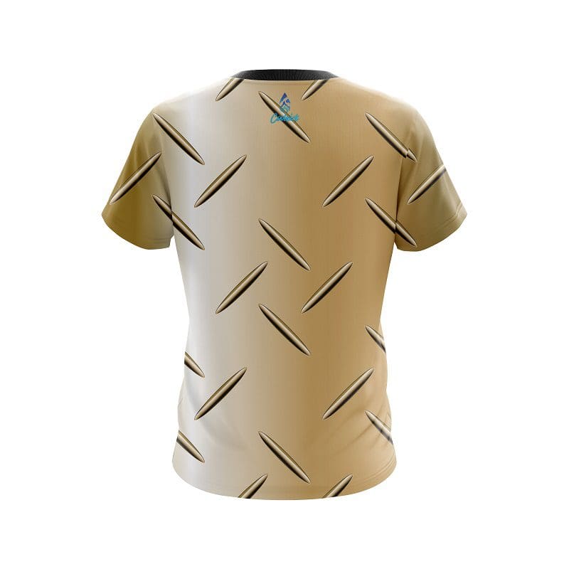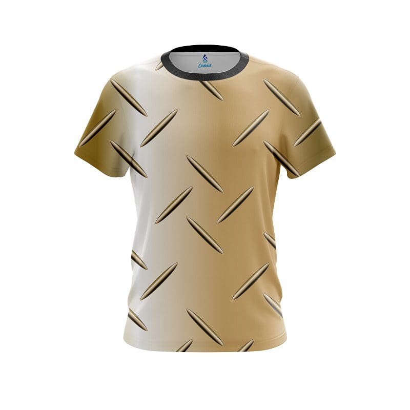 Stay 40% cooler with CoolWick. Our Plain Gold Diamond Plate CoolWick Bowling Jerseys are made of two different fabrics with the back being our CoolWick technology fabric that helps wick moisture away and helps air flow more easily through the fibers.
