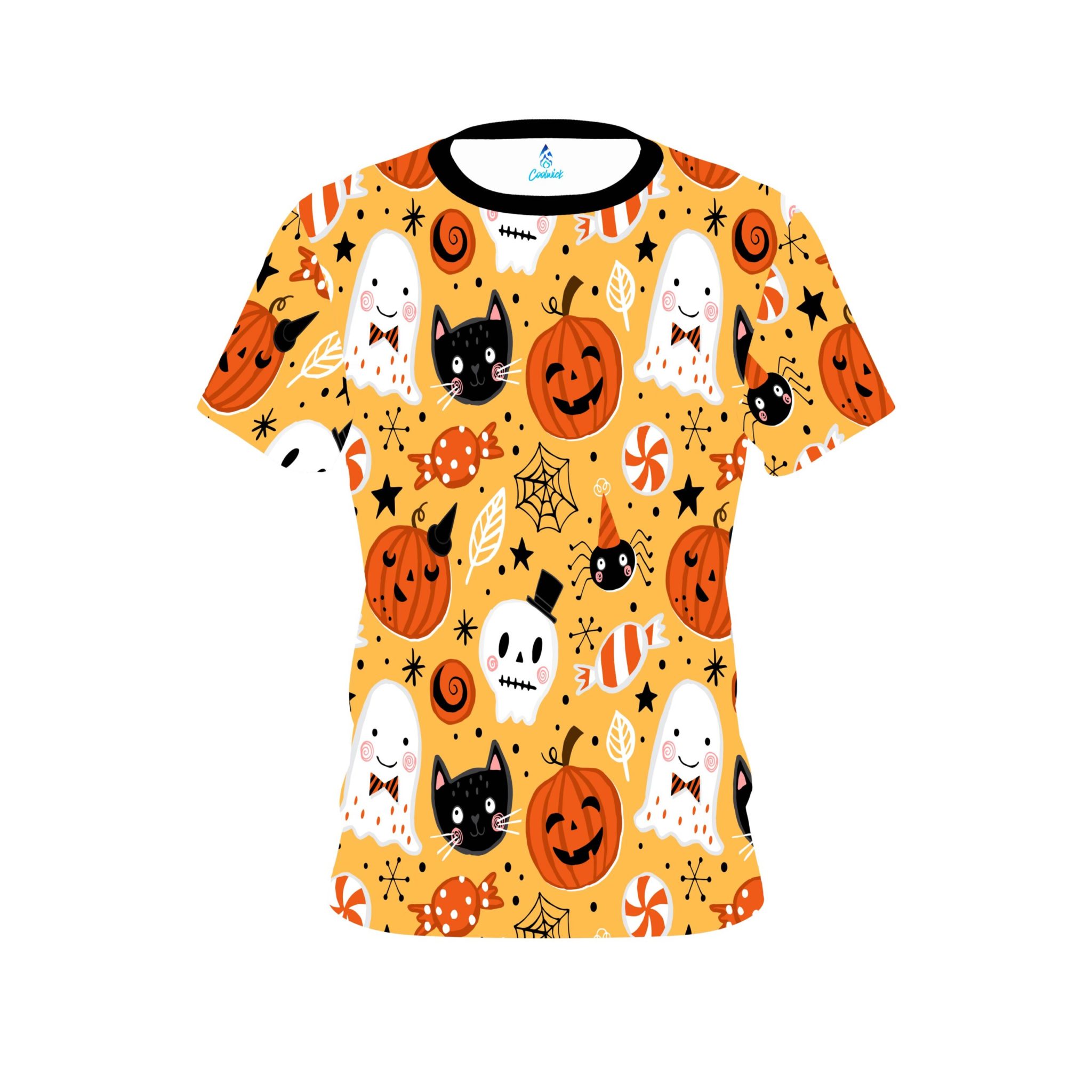 Stay 40% cooler with CoolWick. Our Plain Halloween Candy Coolwick Bowling Jerseys are made of two different fabrics with the back being our CoolWick technology fabric that helps wick moisture away and helps air flow more easily through the fibers.