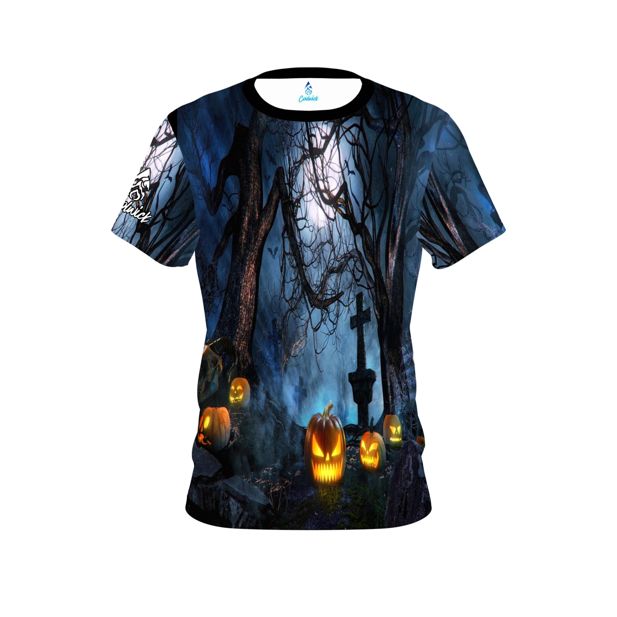 Stay 40% cooler with CoolWick. Our Plain Halloween Pumpkin Alley Coolwick Bowling Jerseys are made of two different fabrics with the back being our CoolWick technology fabric that helps wick moisture away and helps air flow more easily through the fibers.