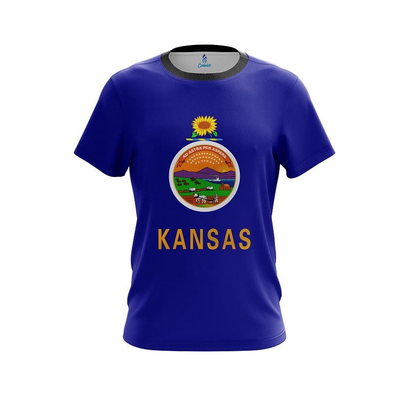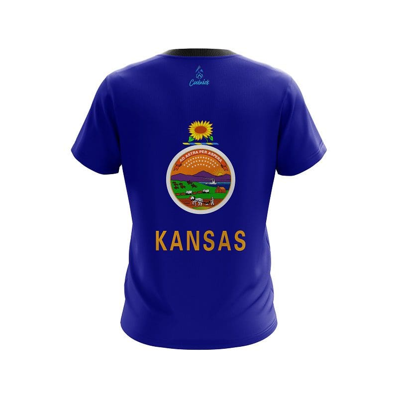 Stay 40% cooler with CoolWick. Our Plain Kansas Flag CoolWick Bowling Jersey are made of two different fabrics with the back being our CoolWick technology fabric that helps wick moisture away and helps air flow more easily through the fibers.