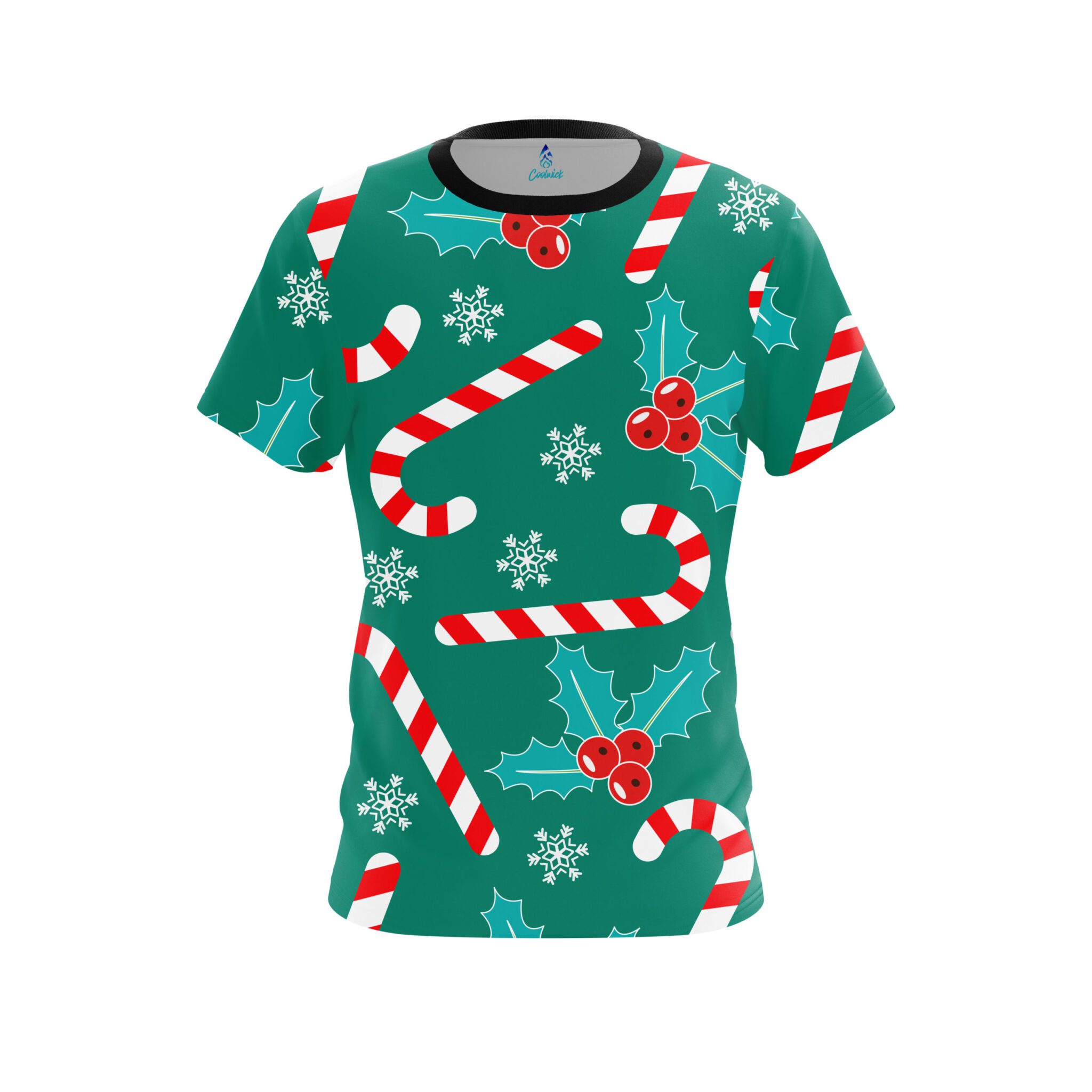 Stay 40% cooler with CoolWick. Our Plain Merry Candy Cane CoolWick Bowling Jersey are made of two different fabrics with the back being our CoolWick technology fabric that helps wick moisture away and helps air flow more easily through the fibers.