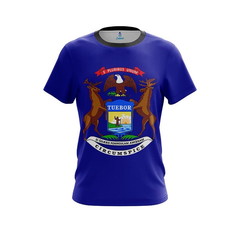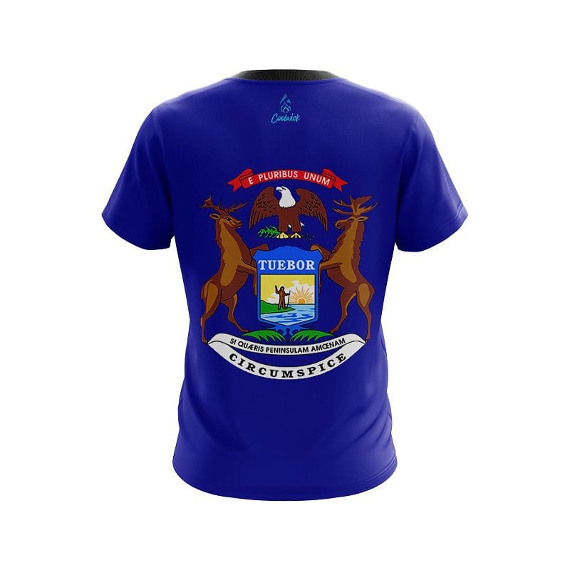 Stay 40% cooler with CoolWick. Our Plain Michigan Flag CoolWick Bowling Jersey are made of two different fabrics with the back being our CoolWick technology fabric that helps wick moisture away and helps air flow more easily through the fibers.