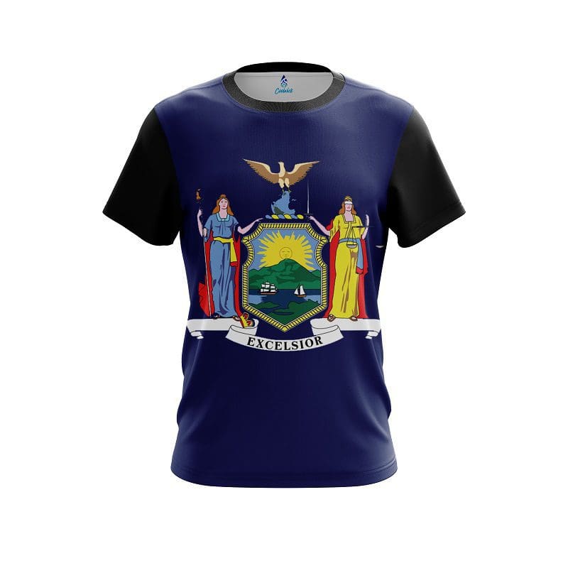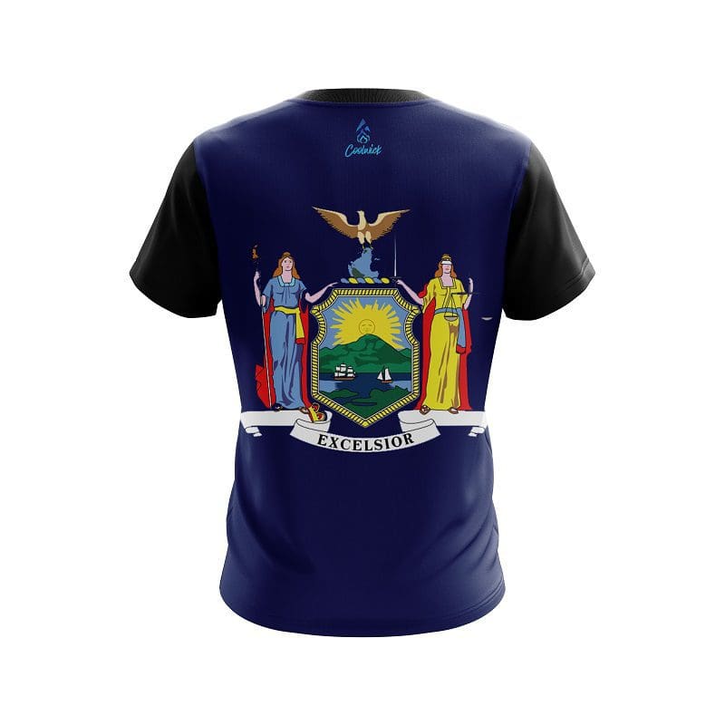 Stay 40% cooler with CoolWick. Our Plain New York Flag CoolWick Bowling Jersey are made of two different fabrics with the back being our CoolWick technology fabric that helps wick moisture away and helps air flow more easily through the fibers.