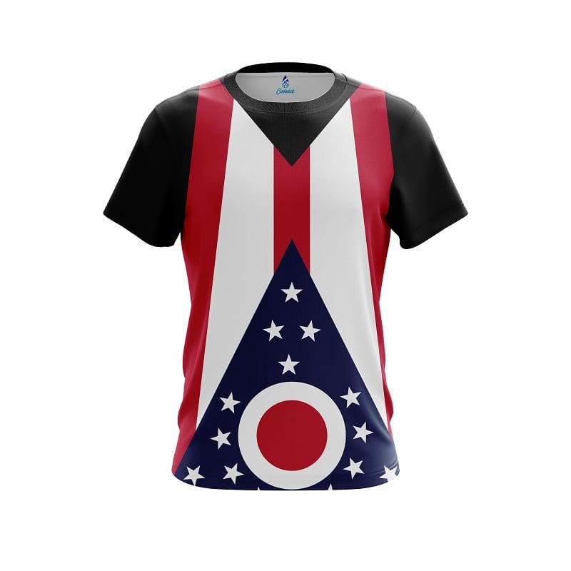 Stay 40% cooler with CoolWick. Our Plain Ohio Flag CoolWick Bowling Jersey are made of two different fabrics with the back being our CoolWick technology fabric that helps wick moisture away and helps air flow more easily through the fibers.