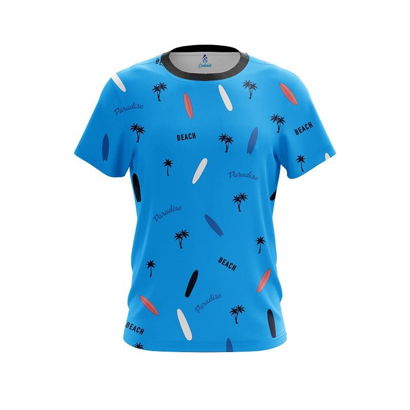 Stay 40% cooler with CoolWick. Our Plain Paradise palms CoolWick Bowling Jerseys are made of two different fabrics with the back being our CoolWick technology fabric that helps wick moisture away and helps air flow more easily through the fibers.