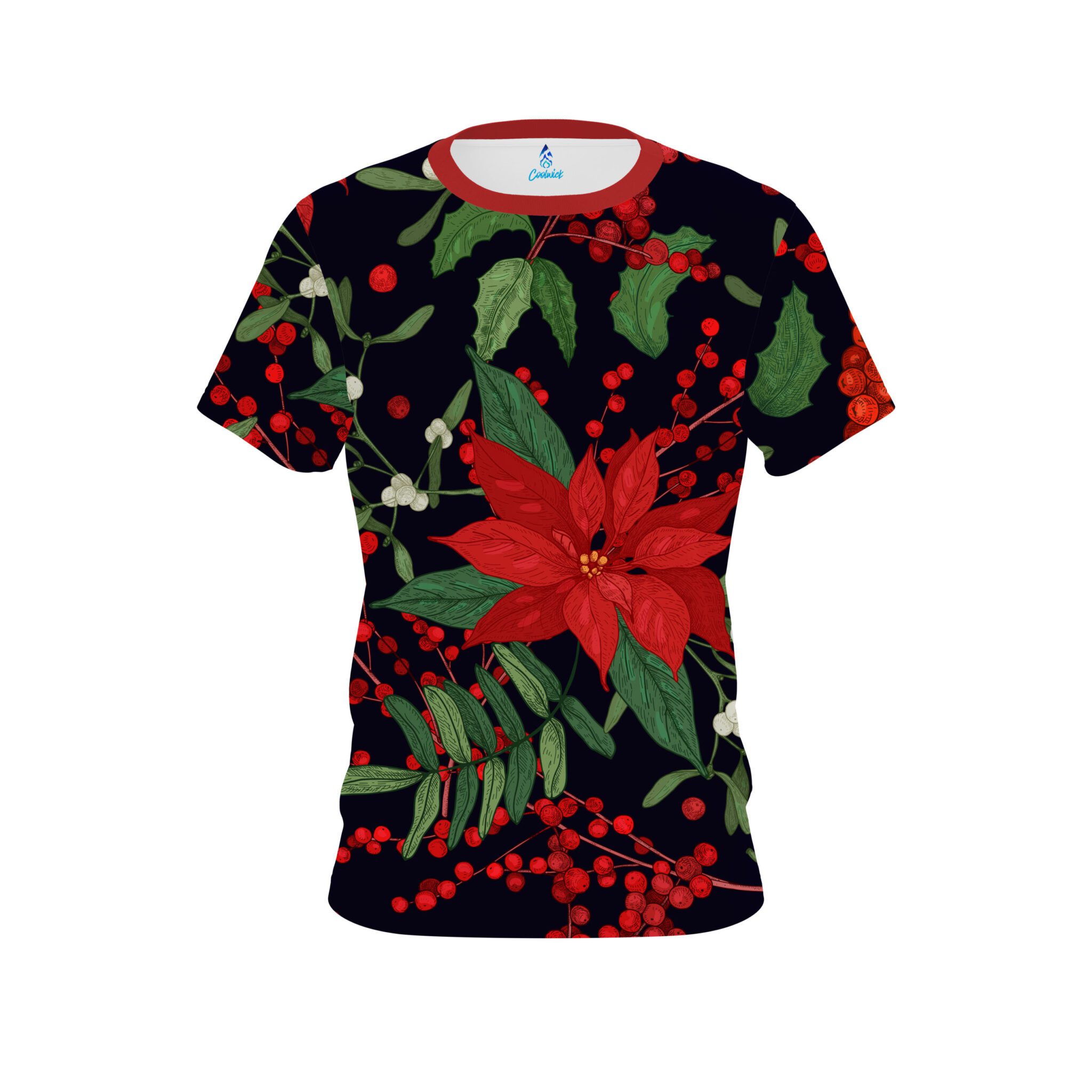 Stay 40% cooler with CoolWick. Our Plain Poinsettia CoolWick Bowling Jersey are made of two different fabrics with the back being our CoolWick technology fabric that helps wick moisture away and helps air flow more easily through the fibers.