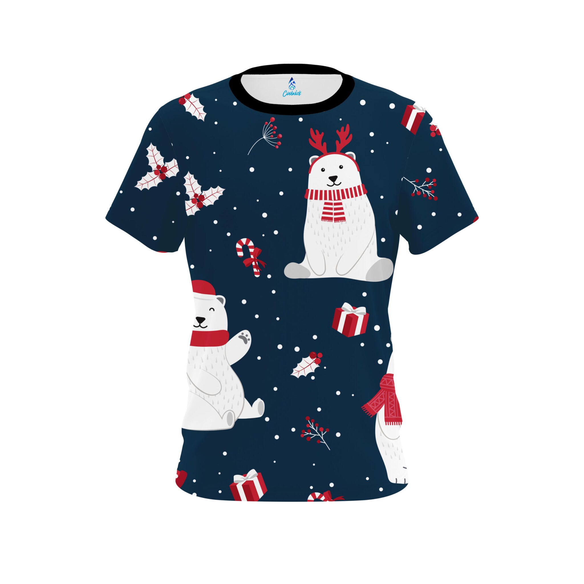 Stay 40% cooler with CoolWick. Our Plain Polar Bear Xmas CoolWick Bowling Jersey are made of two different fabrics with the back being our CoolWick technology fabric that helps wick moisture away and helps air flow more easily through the fibers.