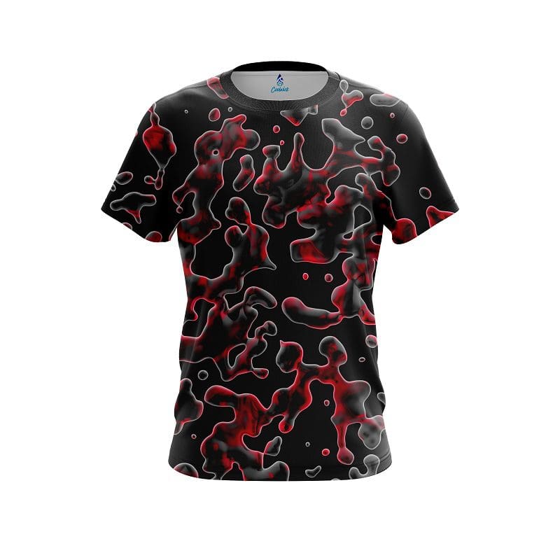Stay 40% cooler with CoolWick. Our Plain Red Flowing Fluid CoolWick Bowling Jerseys are made of two different fabrics with the back being our CoolWick technology fabric that helps wick moisture away and helps air flow more easily through the fibers.