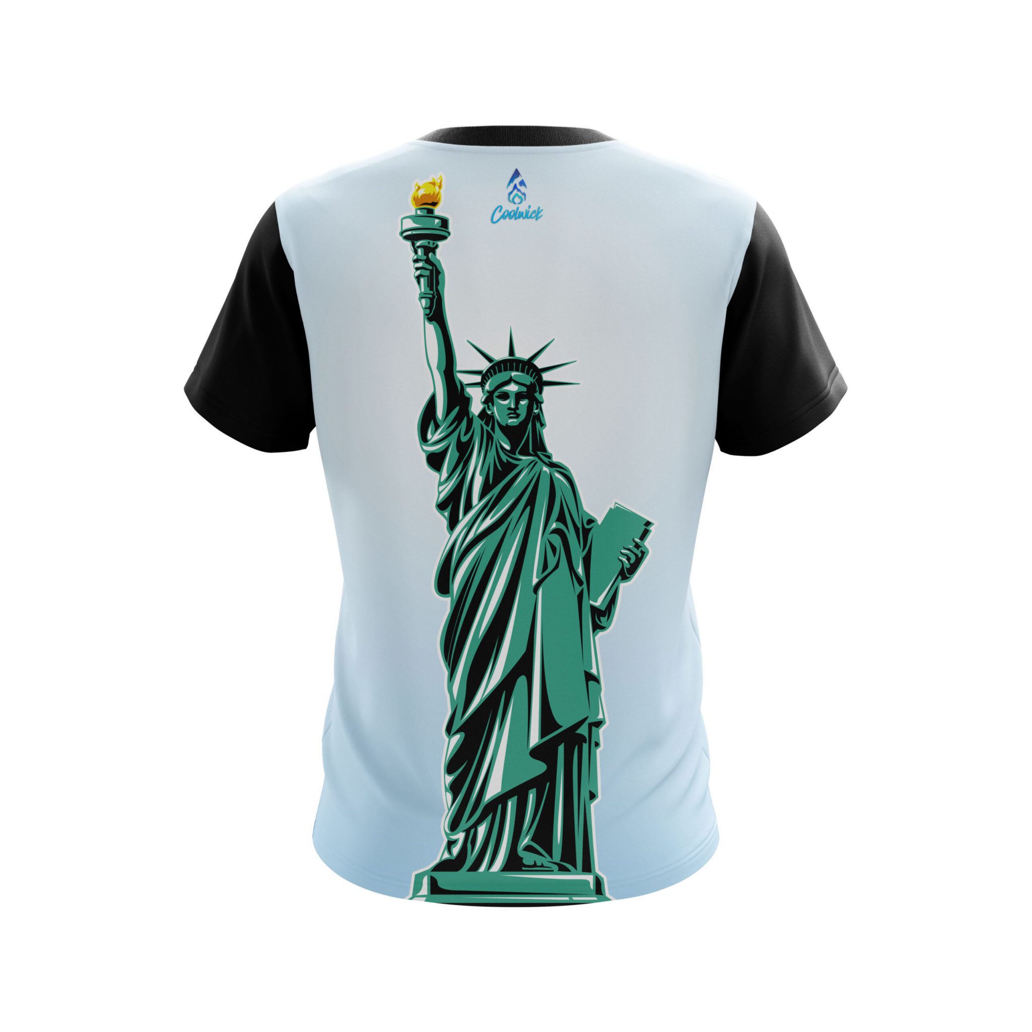Stay 40% cooler with CoolWick. Our Plain Statue Of Liberty CoolWick Bowling Jersey are made of two different fabrics with the back being our CoolWick technology fabric that helps wick moisture away and helps air flow more easily through the fibers.