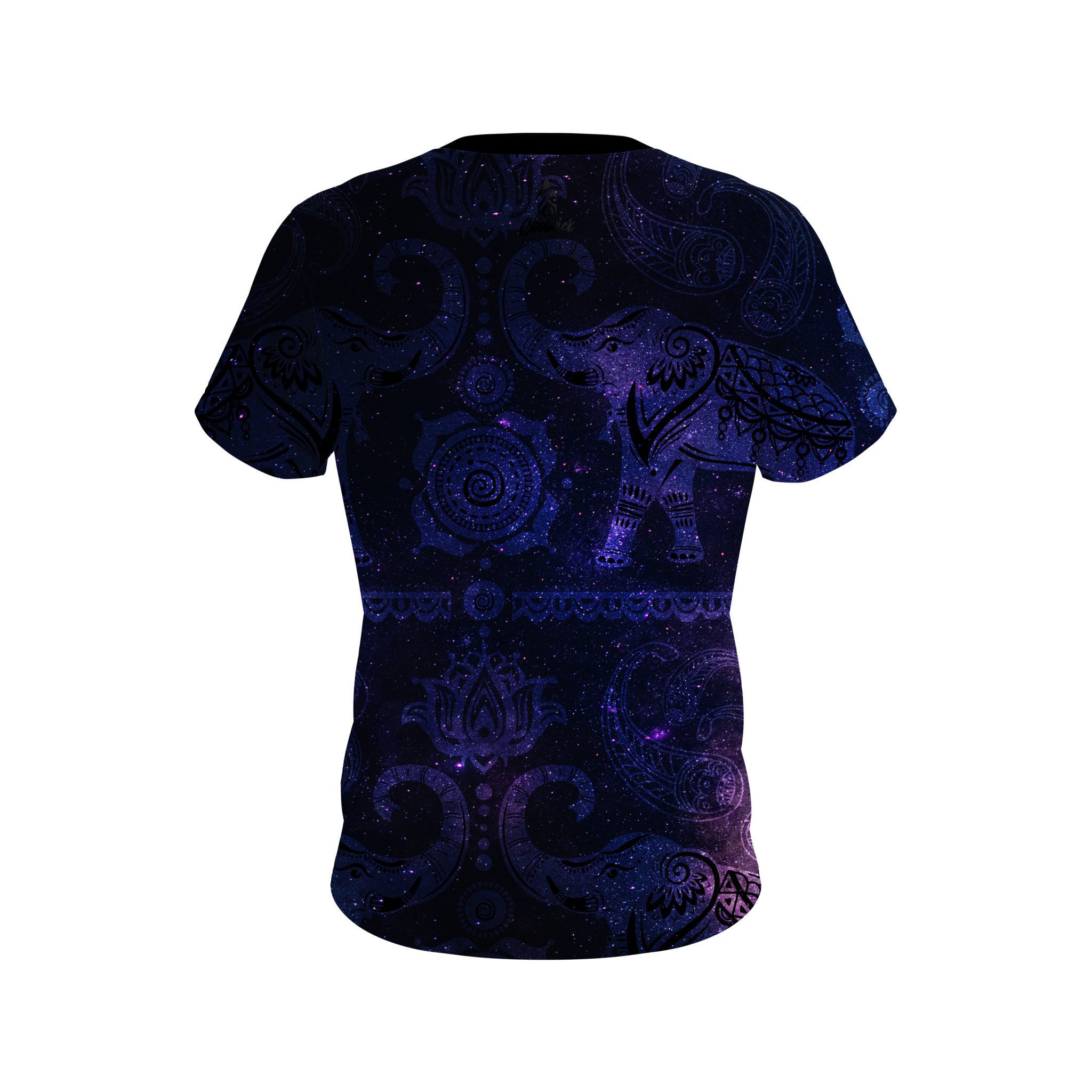 Stay 40% cooler with CoolWick. Our Plain Tribal Elephants Galaxy CoolWick Bowling Jersey are made of two different fabrics with the back being our CoolWick technology fabric that helps wick moisture away and helps air flow more easily through the fibers.