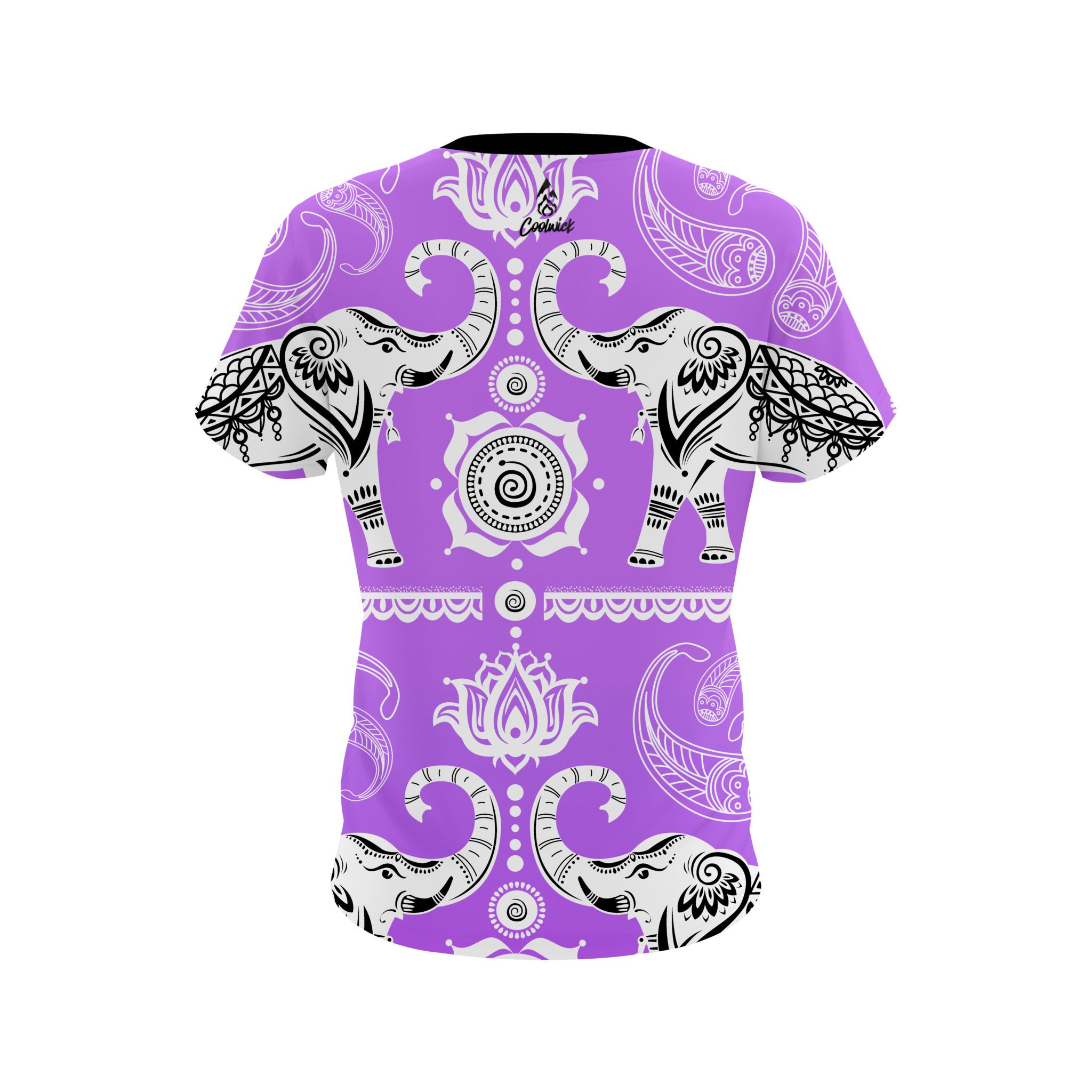 Stay 40% cooler with CoolWick. Our Plain Tribal Elephants Purple CoolWick Bowling Jersey are made of two different fabrics with the back being our CoolWick technology fabric that helps wick moisture away and helps air flow more easily through the fibers.