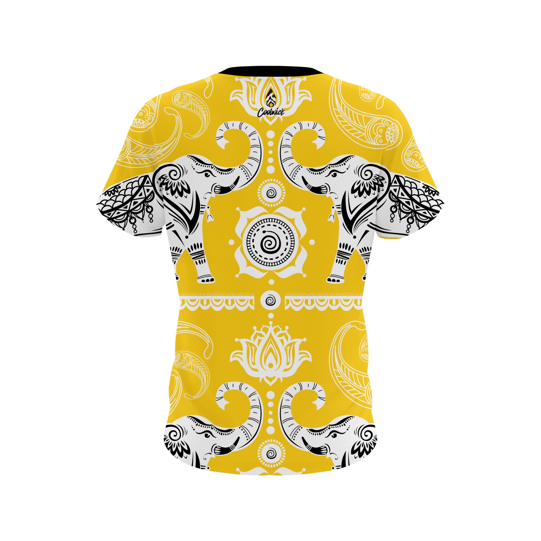 Stay 40% cooler with CoolWick. Our Plain Tribal Elephants Yellow CoolWick Bowling Jersey are made of two different fabrics with the back being our CoolWick technology fabric that helps wick moisture away and helps air flow more easily through the fibers.