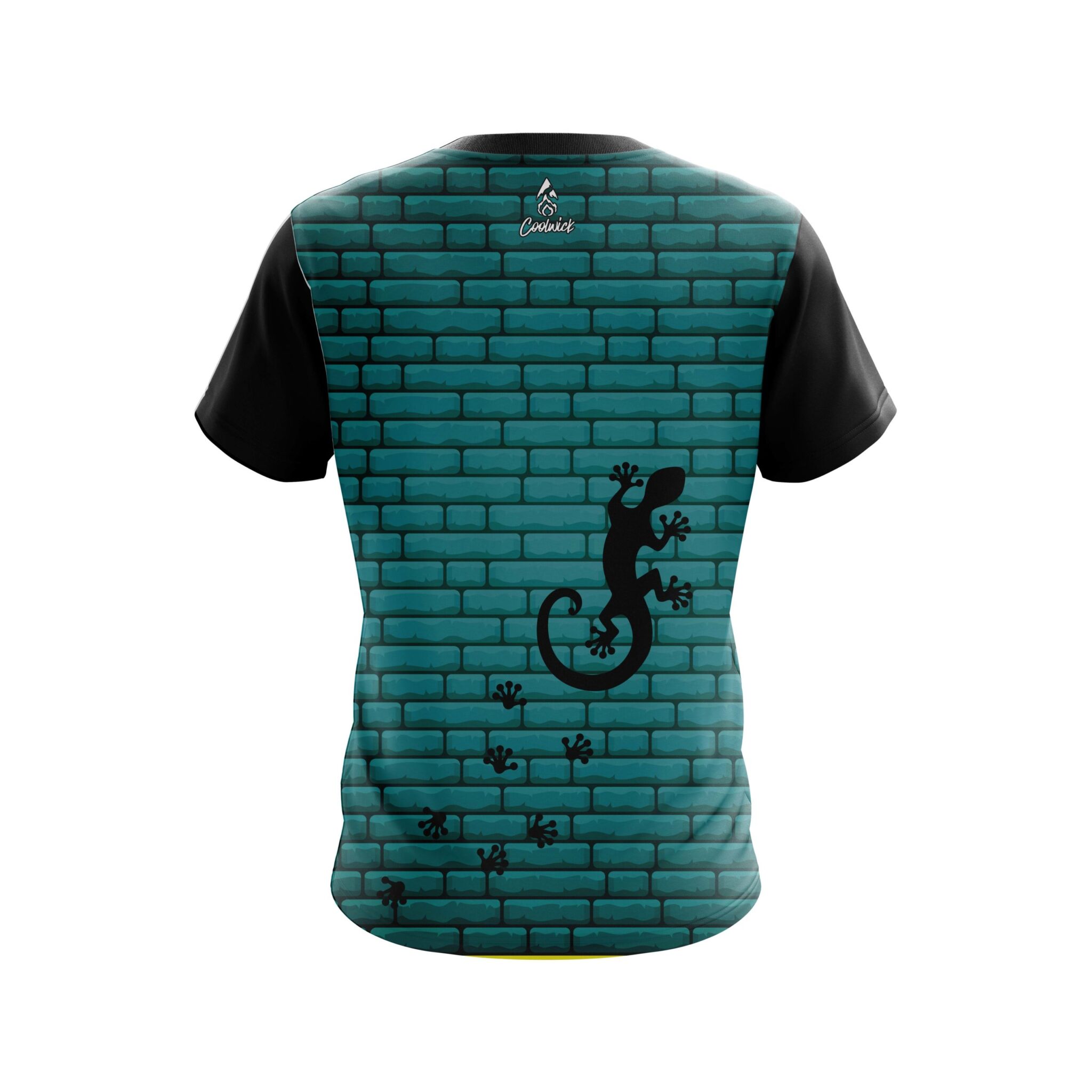 Stay 40% cooler with CoolWick. Our Plain Turq Bricks Gecko CoolWick Bowling Jerseys are made of two different fabrics with the back being our CoolWick technology fabric that helps wick moisture away and helps air flow more easily through the fibers.
