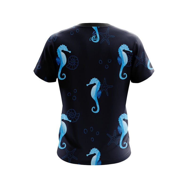 Stay 40% cooler with CoolWick. Our Plain Underwater Seahorse CoolWick Bowling Jerseys are made of two different fabrics with the back being our CoolWick technology fabric that helps wick moisture away and helps air flow more easily through the fibers.