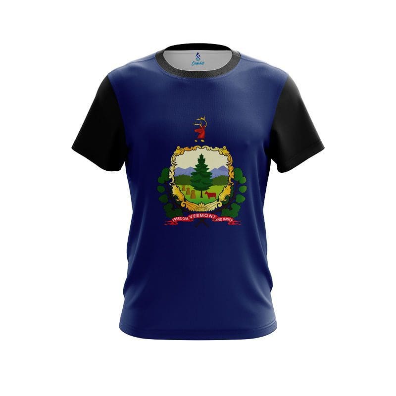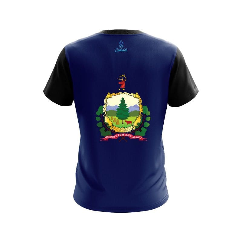 Stay 40% cooler with CoolWick. Our Plain Vermont Flag CoolWick Bowling Jersey are made of two different fabrics with the back being our CoolWick technology fabric that helps wick moisture away and helps air flow more easily through the fibers.