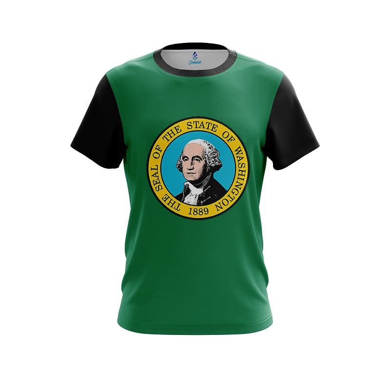 Stay 40% cooler with CoolWick. Our Plain Washington Flag CoolWick Bowling Jersey are made of two different fabrics with the back being our CoolWick technology fabric that helps wick moisture away and helps air flow more easily through the fibers.