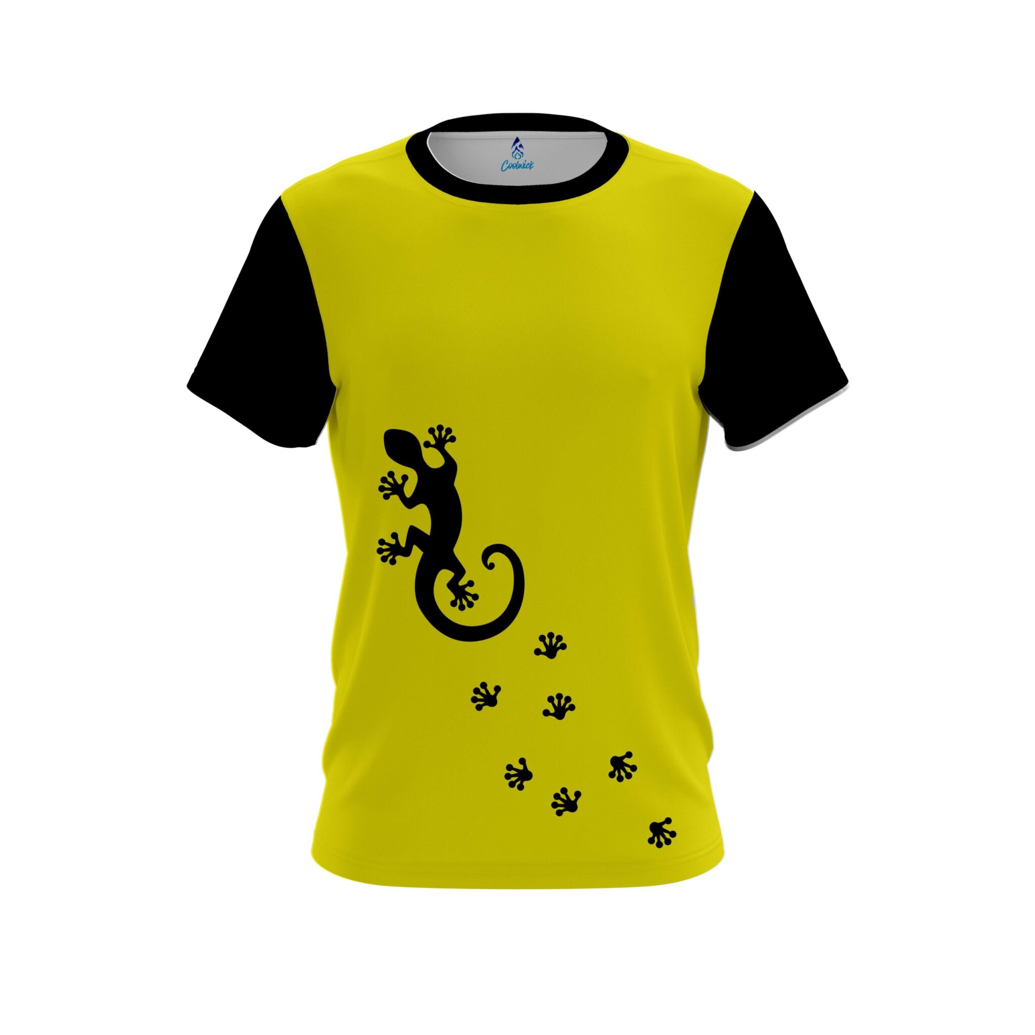 Stay 40% cooler with CoolWick. Our Plain Yellow Gecko CoolWick Bowling Jerseys are made of two different fabrics with the back being our CoolWick technology fabric that helps wick moisture away and helps air flow more easily through the fibers.