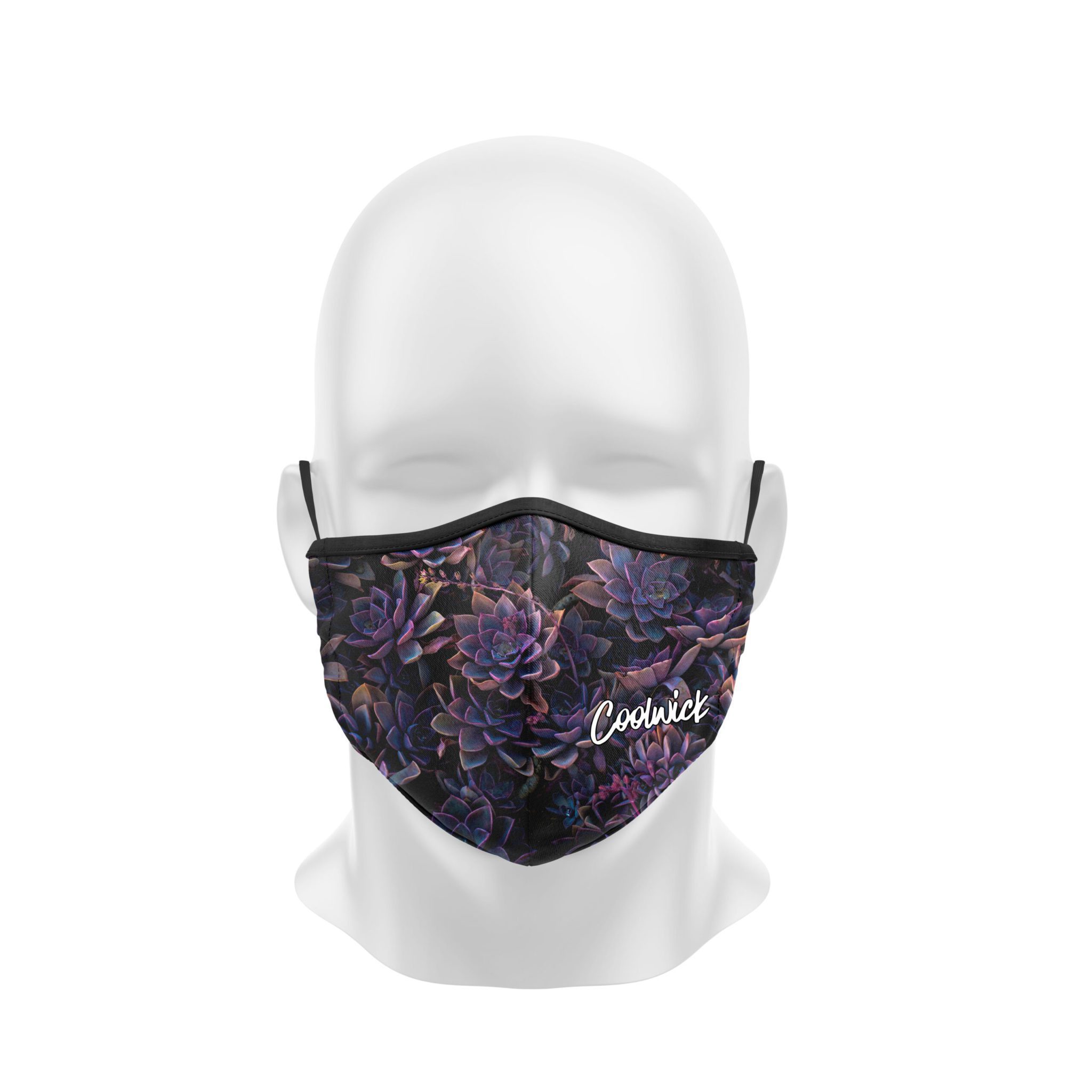 Stay 40% cooler with CoolWick. Our Purple Succulents dye sublimated masks are two-ply and 100% polyester that covers the wearer’s nose and mouth. Our masks are made of fabric that helps wick moisture away and helps air flow more easily through the fibers. The fabric binding has a slight stretch, while ear loops and a center seam help hold it comfortably in place all day.