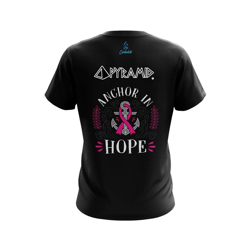 Stay 40% cooler with CoolWick. Our Pyramid Breast Cancer Anchor Fighter CoolWick Bowling Jerseys are made of two different fabrics with the back being our CoolWick technology fabric that helps wick moisture away and helps air flow more easily through the fibers.
