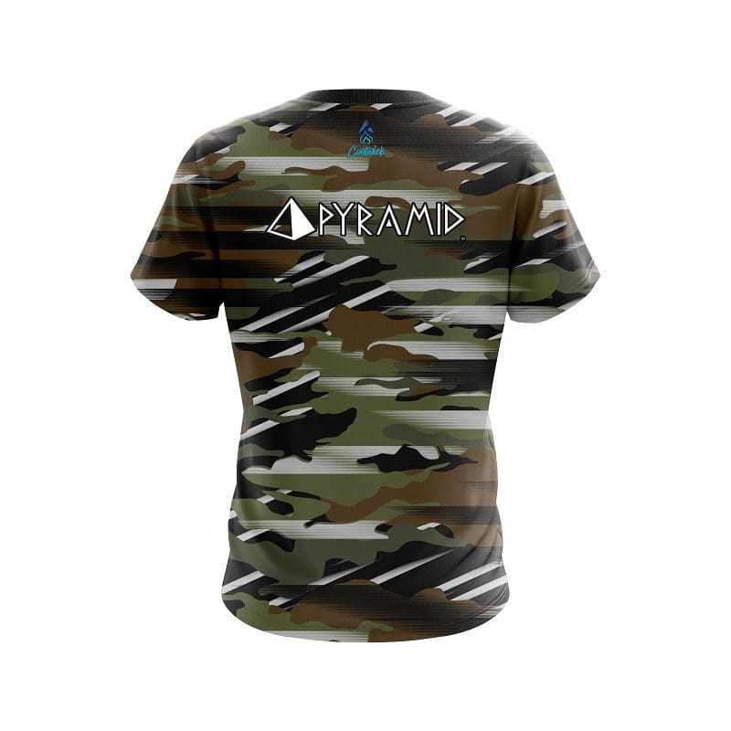 Stay 40% cooler with CoolWick. Our Pyramid Camo Grunge CoolWick Bowling Jerseys are made of two different fabrics with the back being our CoolWick technology fabric that helps wick moisture away and helps air flow more easily through the fibers.