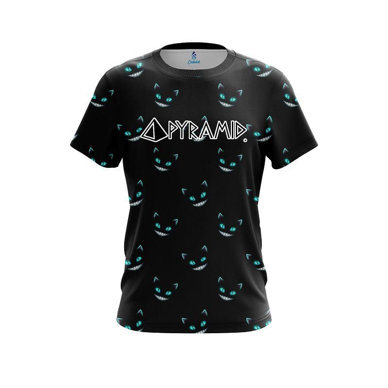 Stay 40% cooler with CoolWick. Our Pyramid Cheshire Midnight Cat CoolWick Bowling Jerseys are made of two different fabrics with the back being our CoolWick technology fabric that helps wick moisture away and helps air flow more easily through the fibers.