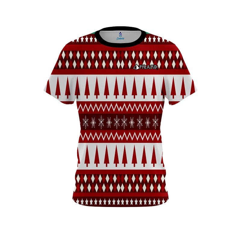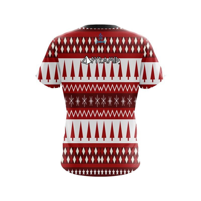 Stay 40% cooler with CoolWick. Our Pyramid Christmas Spirit CoolWick Bowling Jerseys are made of two different fabrics with the back being our CoolWick technology fabric that helps wick moisture away and helps air flow more easily through the fibers.