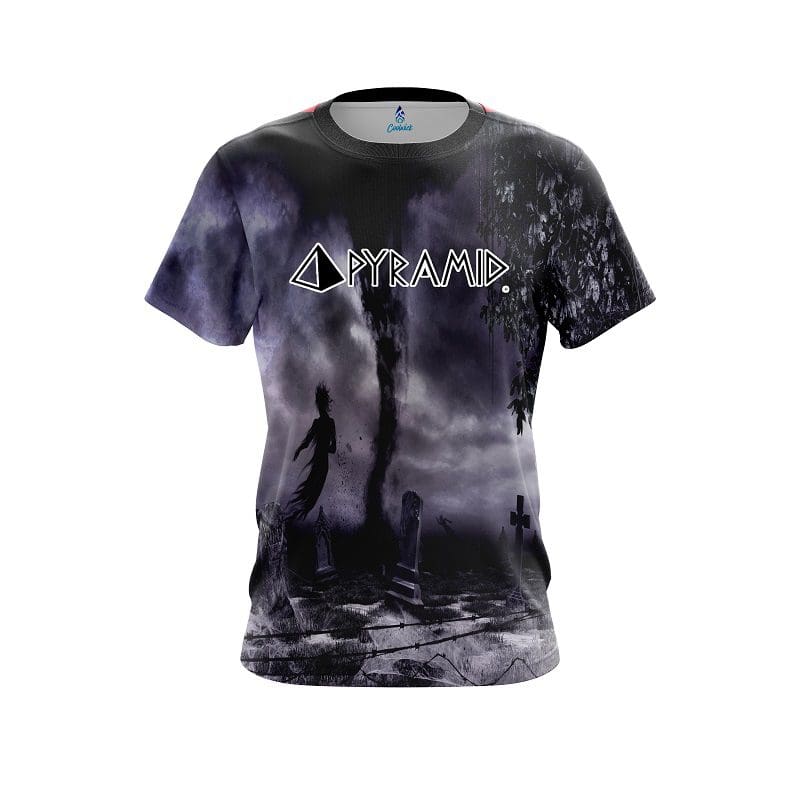 Stay 40% cooler with CoolWick. Our Pyramid Ghost Cemetery CoolWick Bowling Jerseys are made of two different fabrics with the back being our CoolWick technology fabric that helps wick moisture away and helps air flow more easily through the fibers.