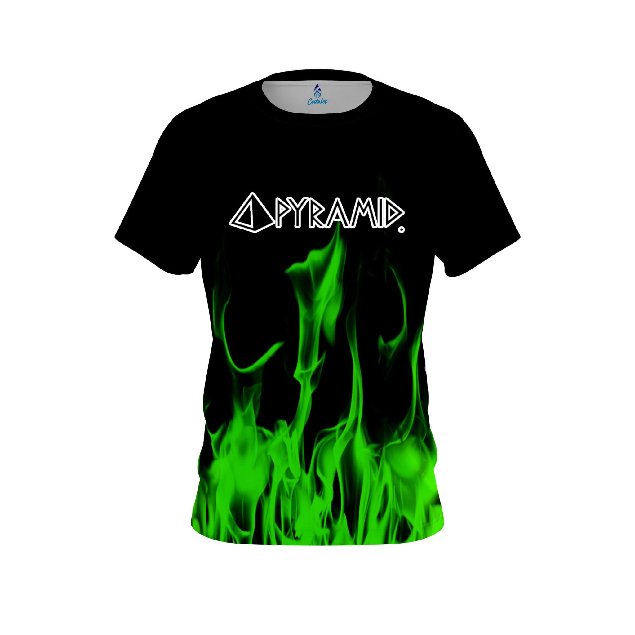 Stay 40% cooler with CoolWick. Our Pyramid Green Flame Bowling Jerseys are made of two different fabrics with the back being our CoolWick technology fabric that helps wick moisture away and helps air flow more easily through the fibers.
