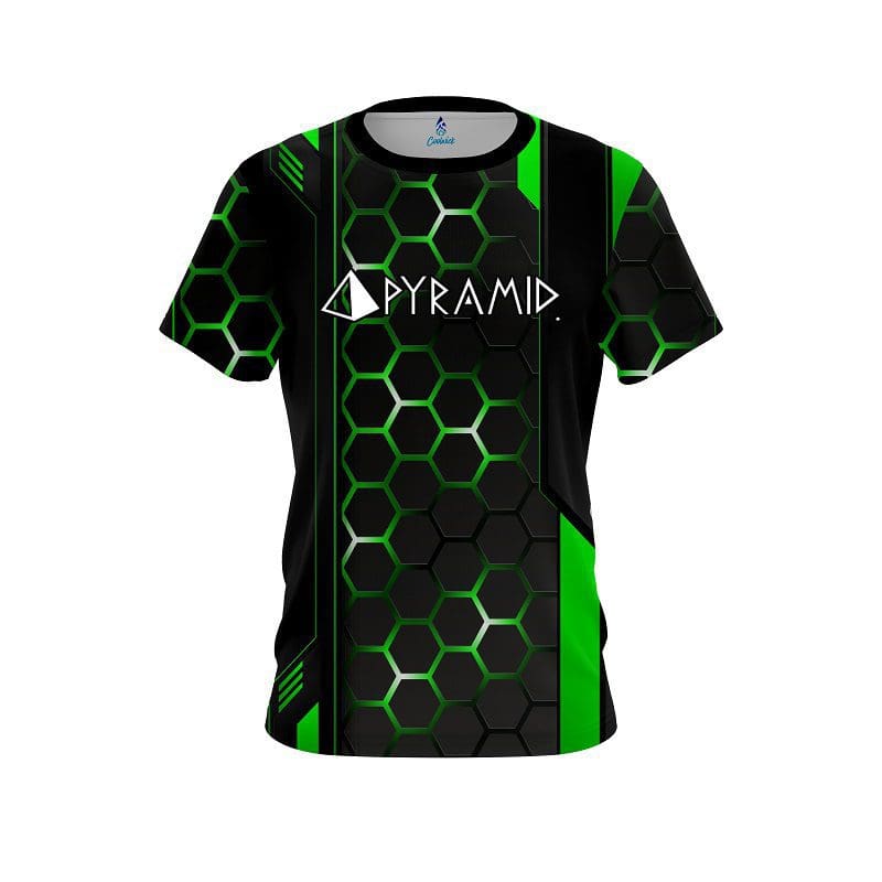 Stay 40% cooler with CoolWick. Our Pyramid Green Steel Comb CoolWick Bowling Jerseys are made of two different fabrics with the back being our CoolWick technology fabric that helps wick moisture away and helps air flow more easily through the fibers.