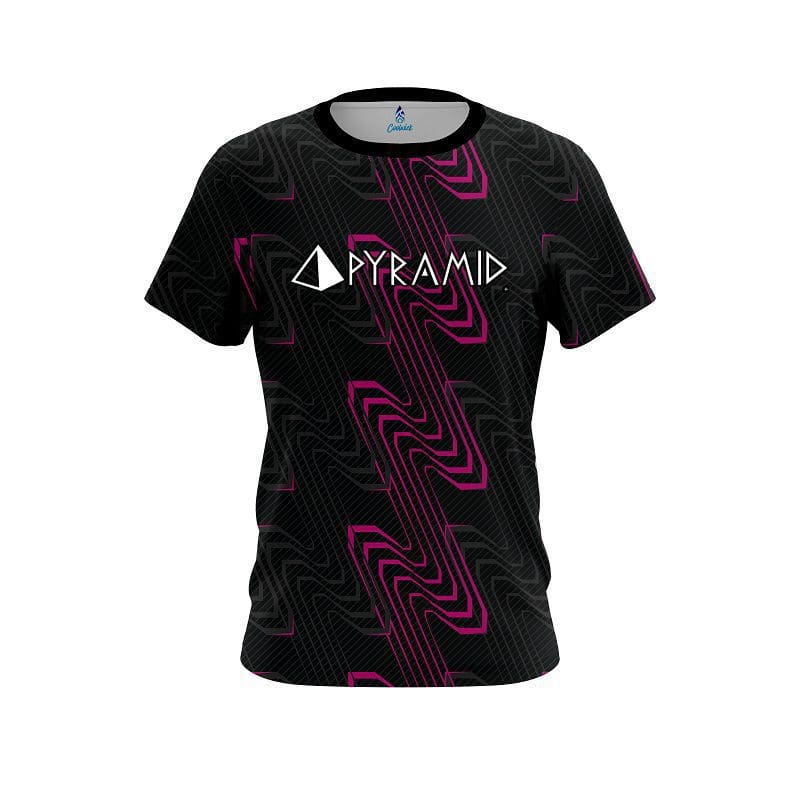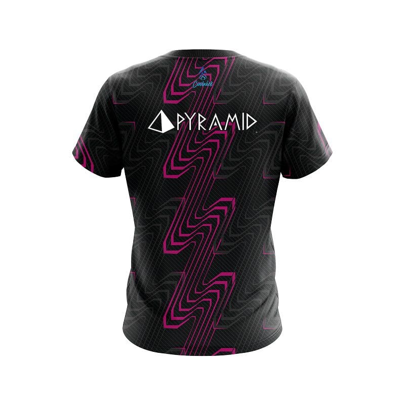 Stay 40% cooler with CoolWick. Our Pyramid Halftone Extreme Pink CoolWick Bowling Jerseys are made of two different fabrics with the back being our CoolWick technology fabric that helps wick moisture away and helps air flow more easily through the fibers.