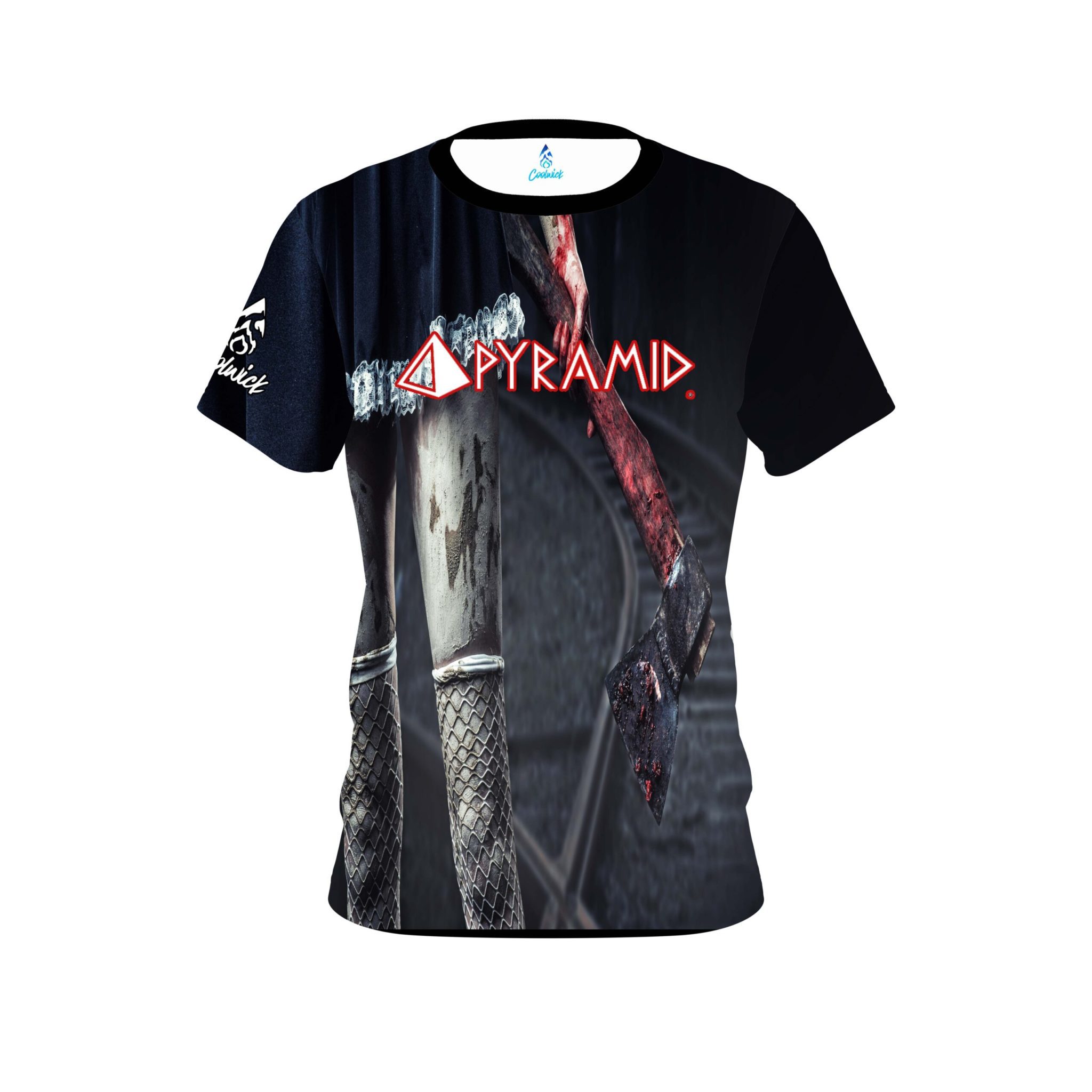 Stay 40% cooler with CoolWick. Our Pyramid Halloween Axe Coolwick Bowling Jerseys are made of two different fabrics with the back being our CoolWick technology fabric that helps wick moisture away and helps air flow more easily through the fibers.