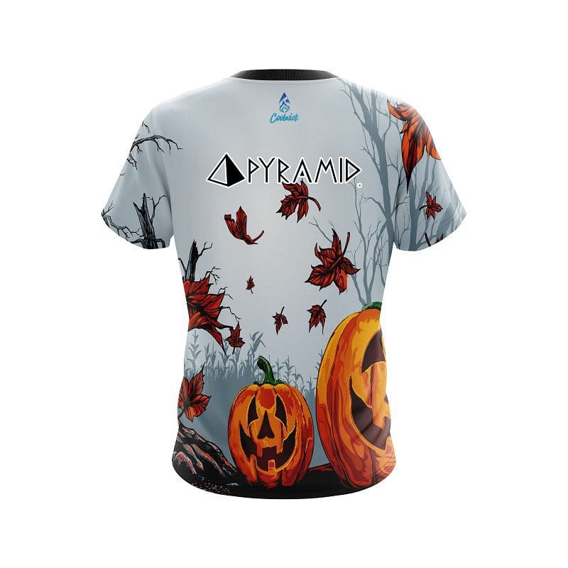 Stay 40% cooler with CoolWick. Our Pyramid Halloween Happiness CoolWick Bowling Jerseys are made of two different fabrics with the back being our CoolWick technology fabric that helps wick moisture away and helps air flow more easily through the fibers.