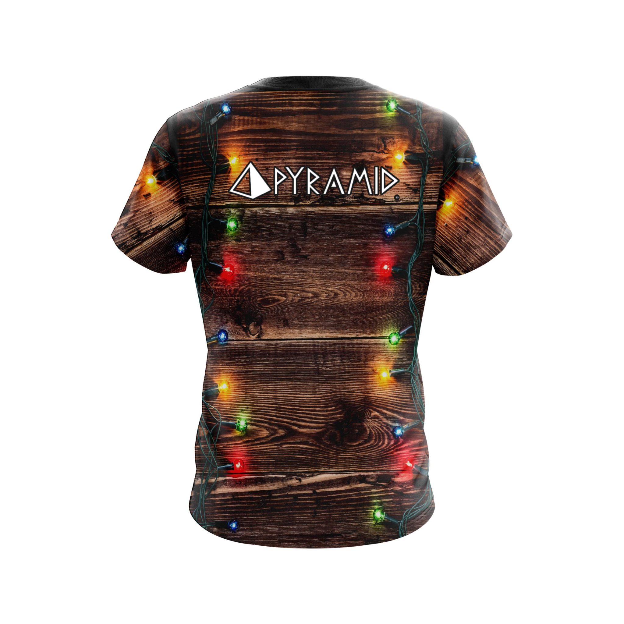 Stay 40% cooler with CoolWick. Our Pyramid Holiday Lights Coolwick Bowling Jerseys are made of two different fabrics with the back being our CoolWick technology fabric that helps wick moisture away and helps air flow more easily through the fibers.