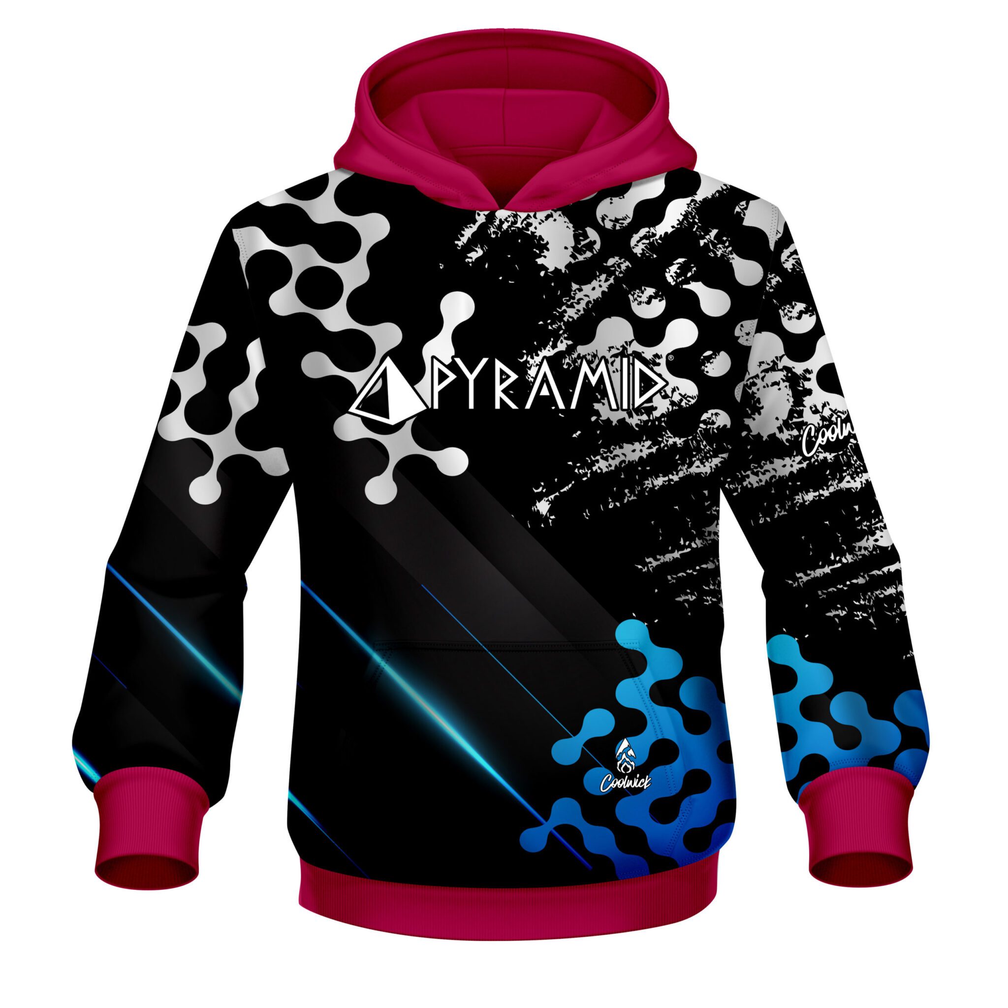 Designed, cut and sewn by hand our Pyramid Level Up Blue CoolWick Bowling Hoodies are made to keep you warm and comfy with HD graphics and eye-catching style.