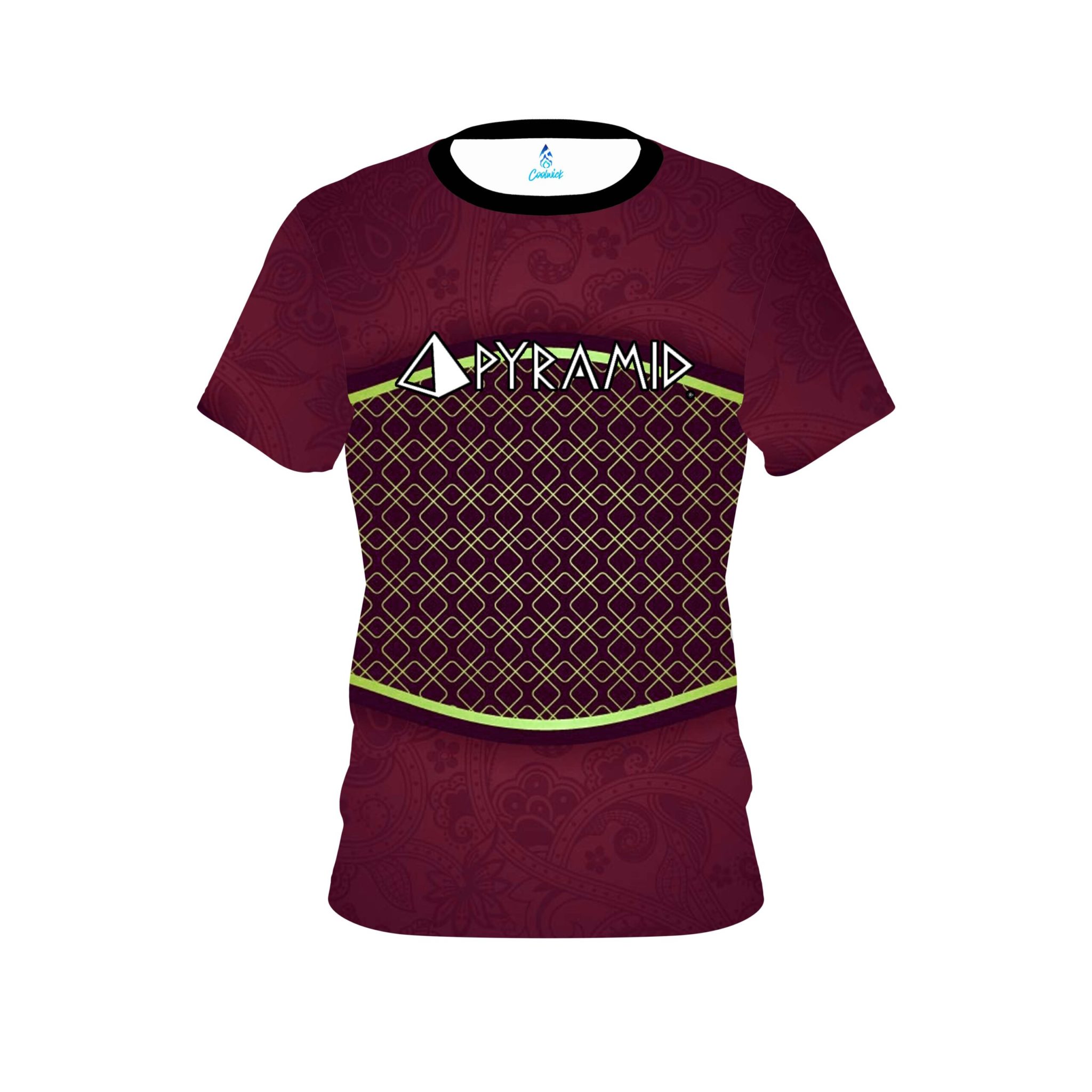Stay 40% cooler with CoolWick. Our Pyramid Maroon Barricade Bowling Jerseys are made of two different fabrics with the back being our CoolWick technology fabric that helps wick moisture away and helps air flow more easily through the fibers.