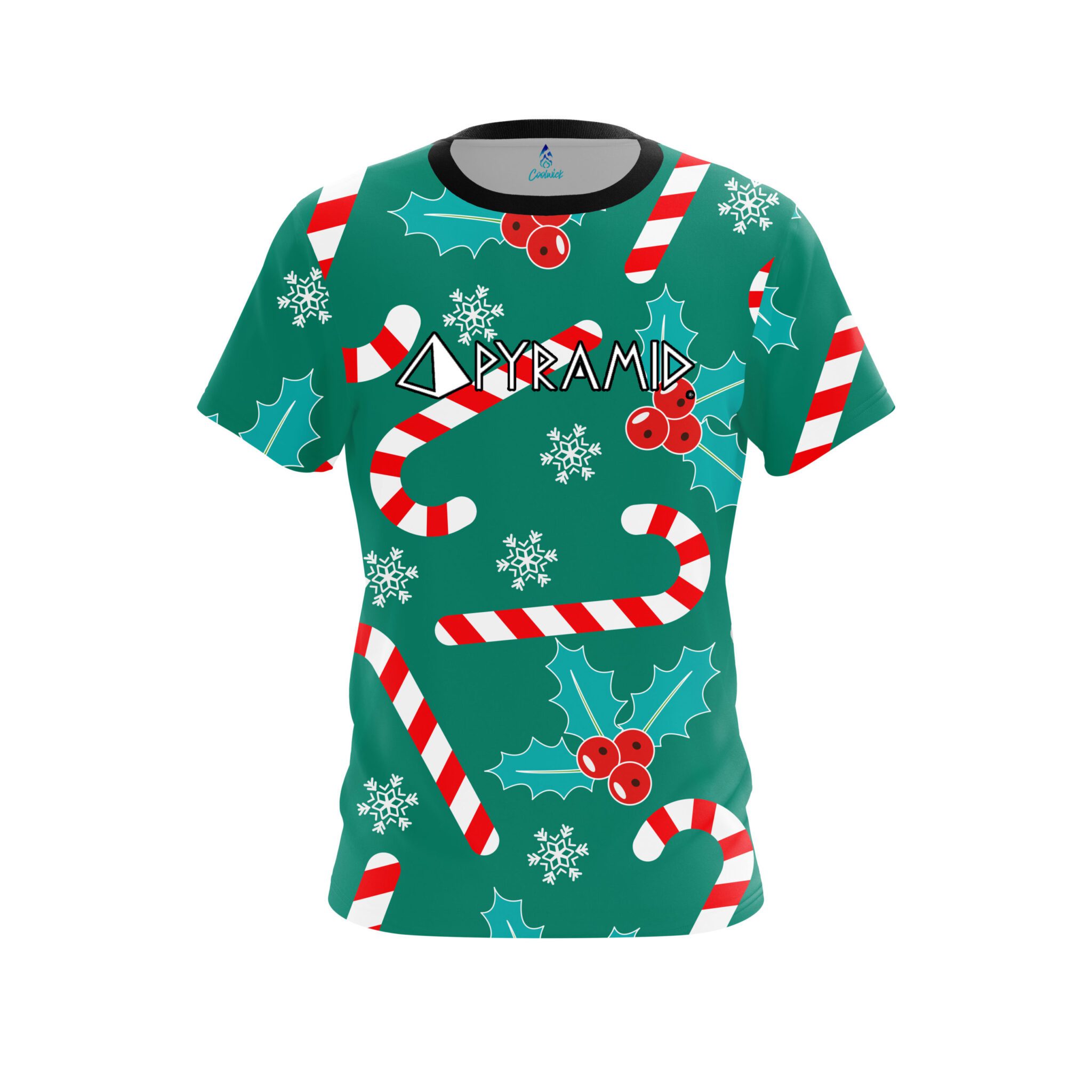 Stay 40% cooler with CoolWick. Our Pyramid Merry Candy Cane CoolWick Bowling Jersey are made of two different fabrics with the back being our CoolWick technology fabric that helps wick moisture away and helps air flow more easily through the fibers.