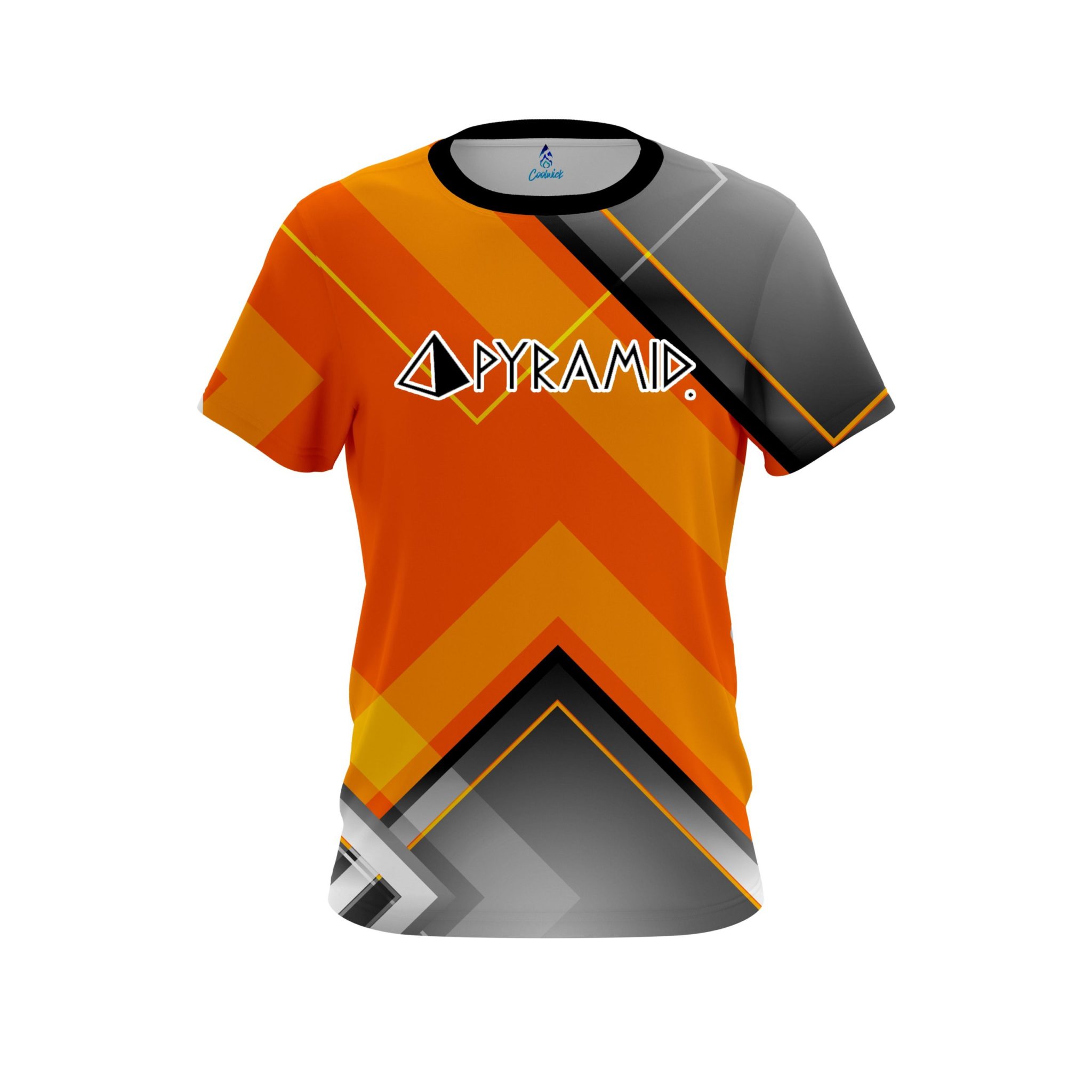 Stay 40% cooler with CoolWick. Our Pyramid Orange Veneer Bowling Jerseys are made of two different fabrics with the back being our CoolWick technology fabric that helps wick moisture away and helps air flow more easily through the fibers.