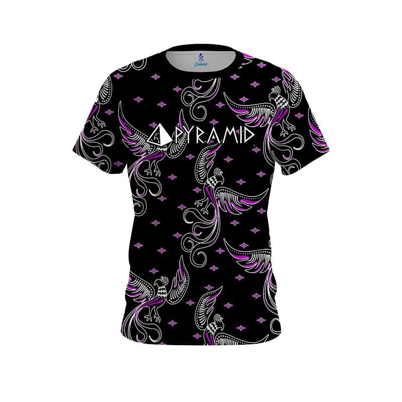 Stay 40% cooler with CoolWick. Our Pyramid Phoenix Break Purple CoolWick Bowling Jerseys are made of two different fabrics with the back being our CoolWick technology fabric that helps wick moisture away and helps air flow more easily through the fibers.