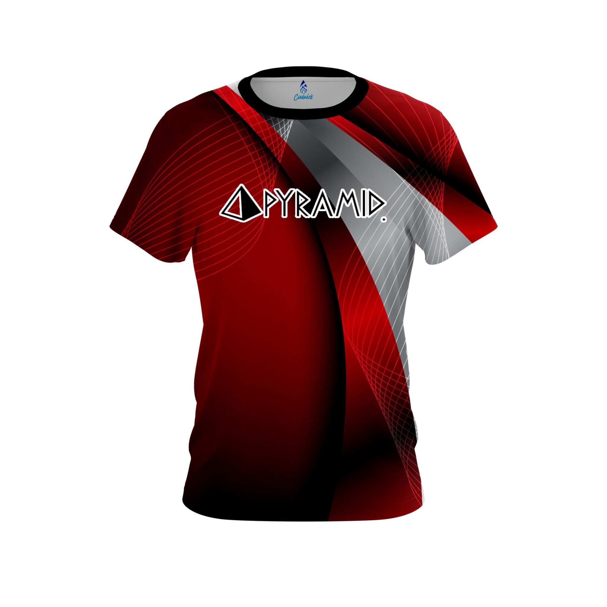 Stay 40% cooler with CoolWick. Our Pyramid Red Oblique Bowling Jerseys are made of two different fabrics with the back being our CoolWick technology fabric that helps wick moisture away and helps air flow more easily through the fibers.