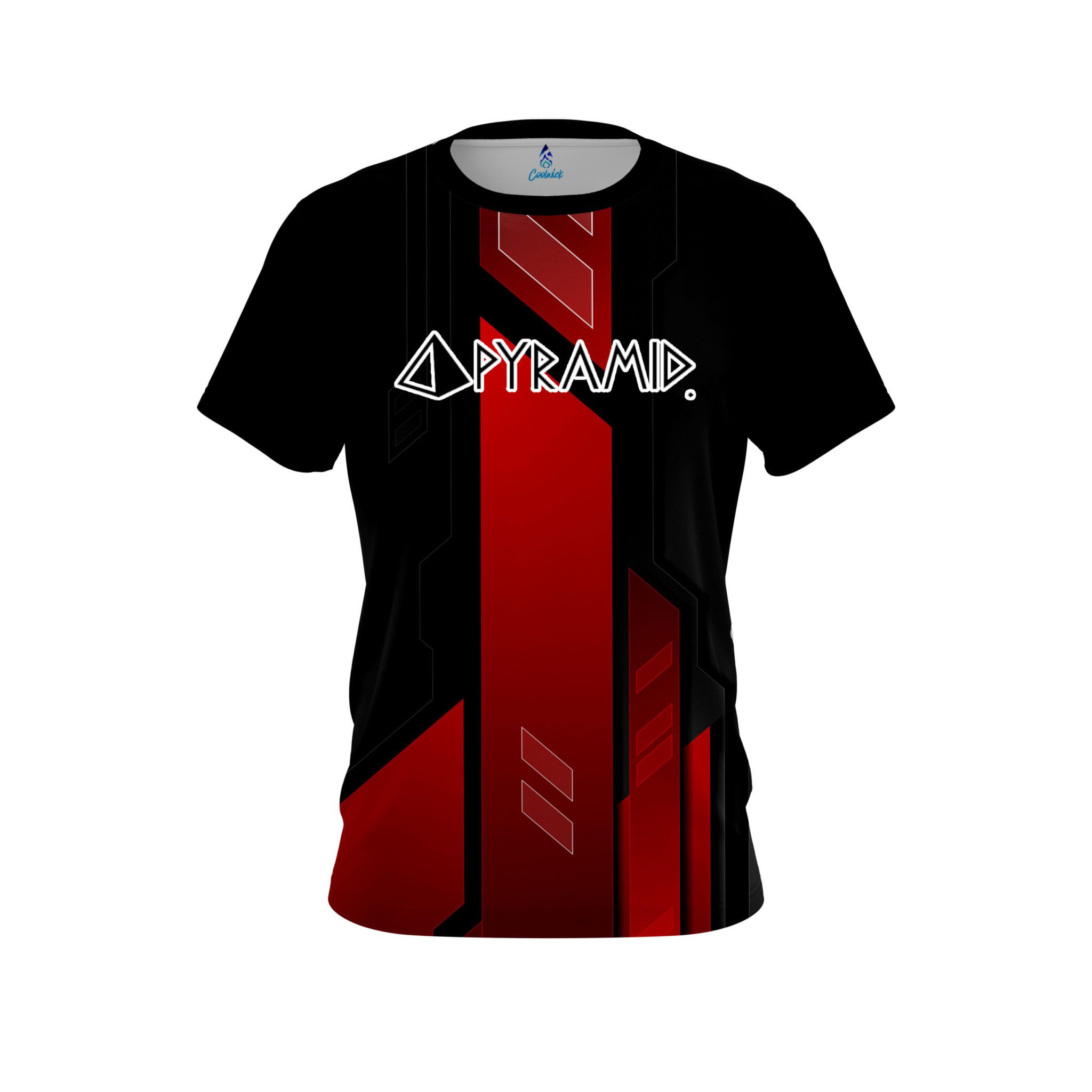 Stay 40% cooler with CoolWick. Our Pyramid Red Underscore Bowling Jerseys are made of two different fabrics with the back being our CoolWick technology fabric that helps wick moisture away and helps air flow more easily through the fibers.