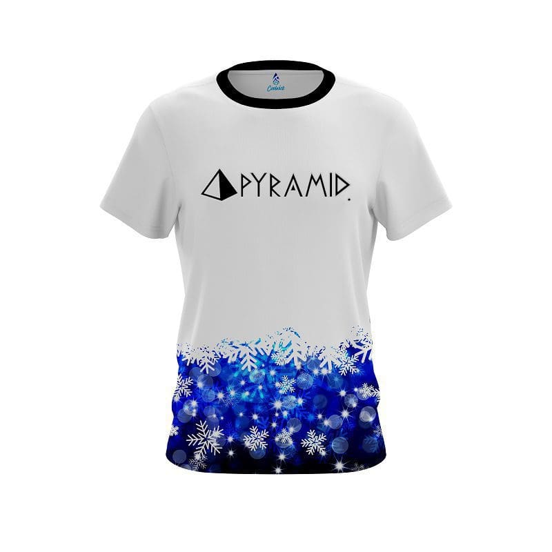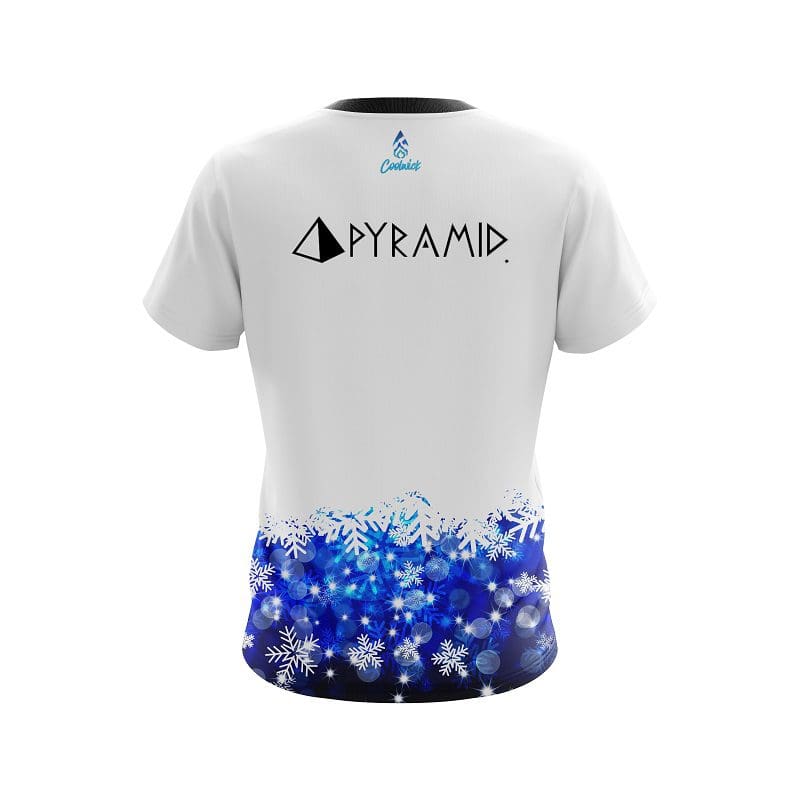 Stay 40% cooler with CoolWick. Our Pyramid Snowflake Season CoolWick Bowling Jerseys are made of two different fabrics with the back being our CoolWick technology fabric that helps wick moisture away and helps air flow more easily through the fibers.