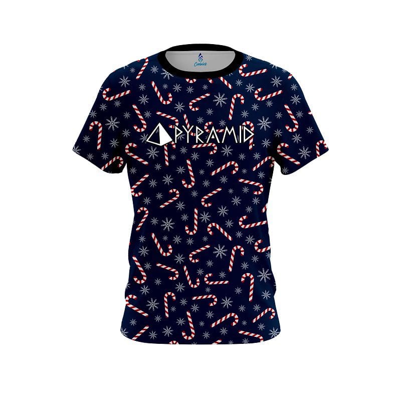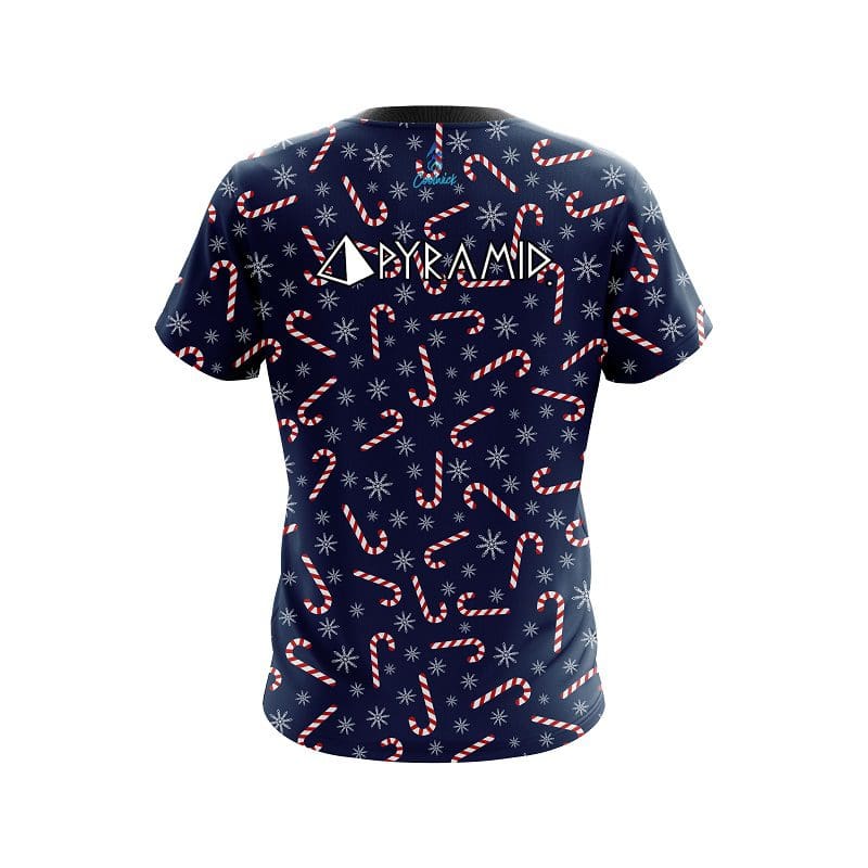 Stay 40% cooler with CoolWick. Our Pyramid Snowy Candy Cane CoolWick Bowling Jerseys are made of two different fabrics with the back being our CoolWick technology fabric that helps wick moisture away and helps air flow more easily through the fibers.