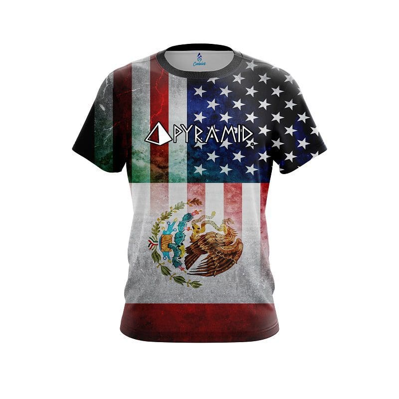 Stay 40% cooler with CoolWick. Our Pyramid USA Mexico Flag Bowling Jerseys are made of two different fabrics with the back being our CoolWick technology fabric that helps wick moisture away and helps air flow more easily through the fibers.