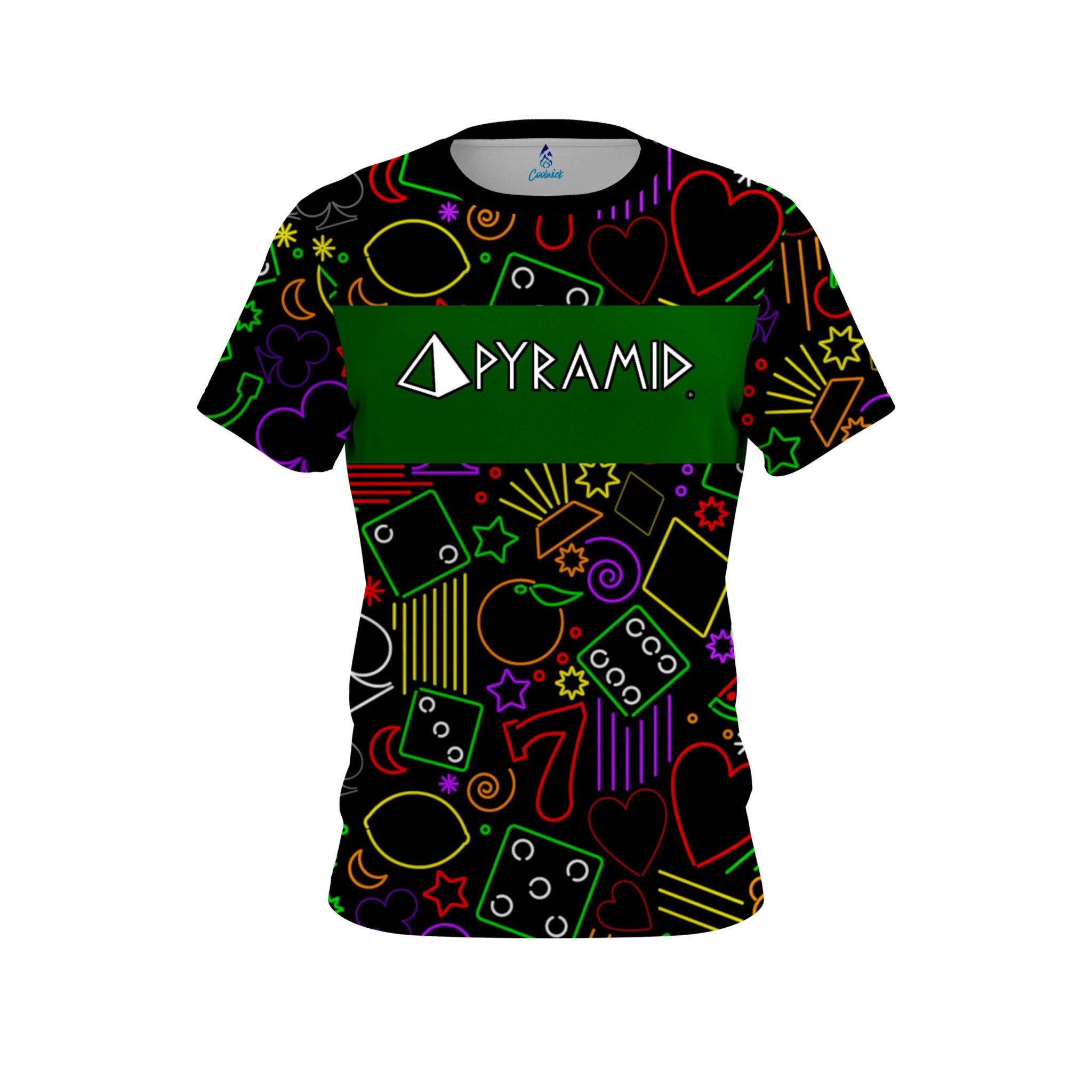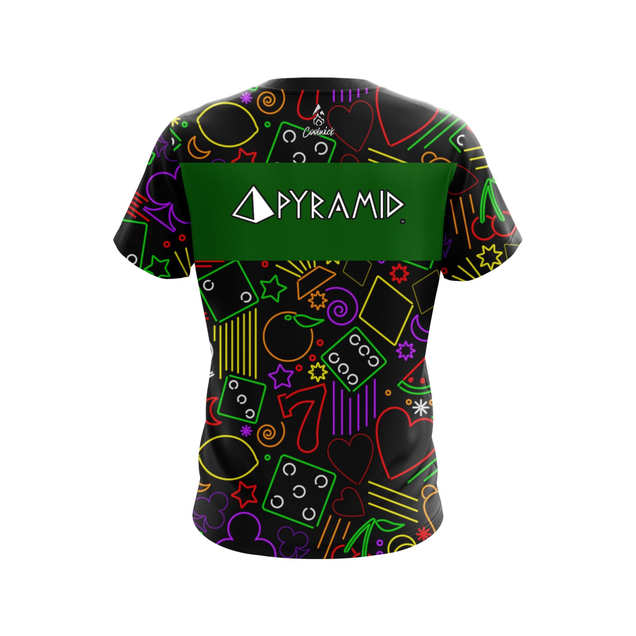 Stay 40% cooler with CoolWick. Our Pyramid Vegas Baby Bowling Jerseys are made of two different fabrics with the back being our CoolWick technology fabric that helps wick moisture away and helps air flow more easily through the fibers.