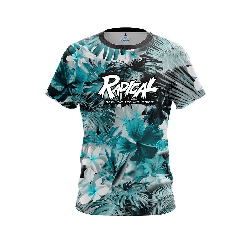 Stay 40% cooler with CoolWick. Our Radical Aqua Tropical Leafs Effect CoolWick Bowling Jerseys are made of two different fabrics with the back being our CoolWick technology fabric that helps wick moisture away and helps air flow more easily through the fibers.