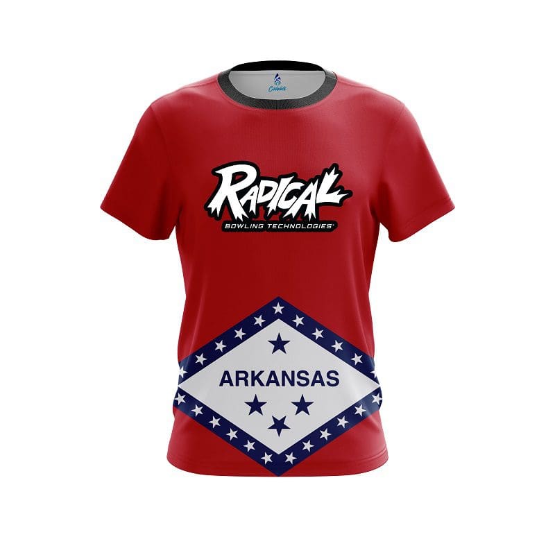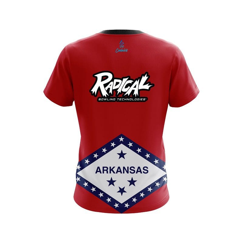 Stay 40% cooler with CoolWick. Our Radical Arkansas Flag CoolWick Bowling Jersey are made of two different fabrics with the back being our CoolWick technology fabric that helps wick moisture away and helps air flow more easily through the fibers.